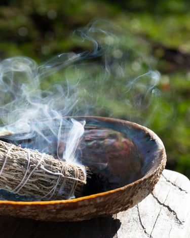 En esta instancia se cuida el fuego y el espacio ritual, y se realiza un sahumado grupal consciente orientado a la limpieza y activación de los campos energéticos.