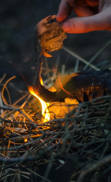 El Elemento Fuego se manifiesta a través del fuego vivo, encendido y sostenido como espacio de presencia, calor y transformación.