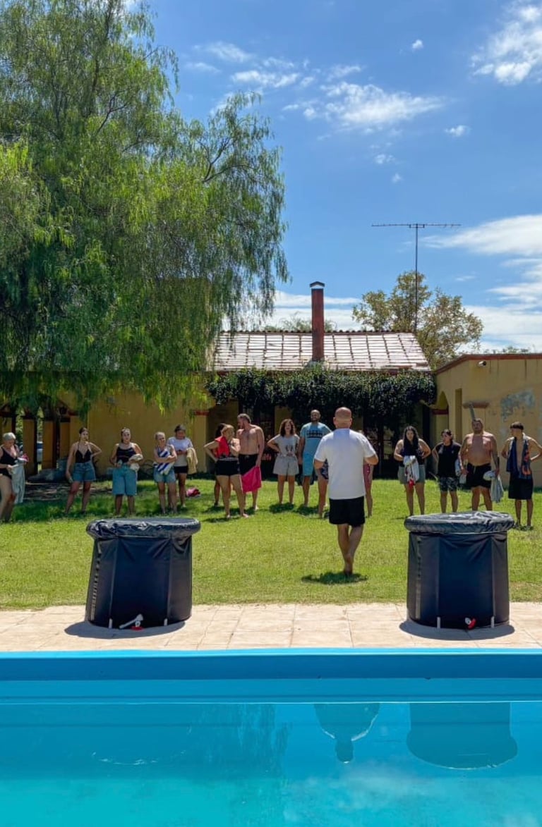 El Elemento Agua se trabaja a través de una experiencia de inmersión al frío, guiada y acompañada, que invita a un encuentro profundo con el cuerpo y la respiración.