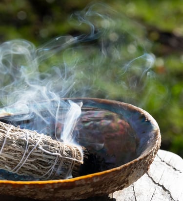 En esta instancia se cuida el fuego y el espacio ritual, y se realiza un sahumado grupal consciente orientado a la limpieza y activación de los campos energéticos.