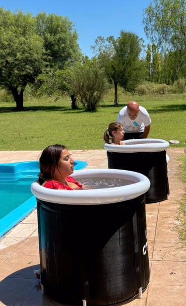 El Elemento Agua se trabaja a través de una experiencia de inmersión al frío, guiada y acompañada, que invita a un encuentro profundo con el cuerpo y la respiración.